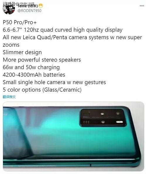 最近手机圈可是热闹非凡呢!尤其是华为的新品——P50,各种配置的爆料层出不穷,让人眼花缭乱。今天,就让我带你一起揭开P50的神秘面纱,看看这款手机到底有哪些亮点吧!
