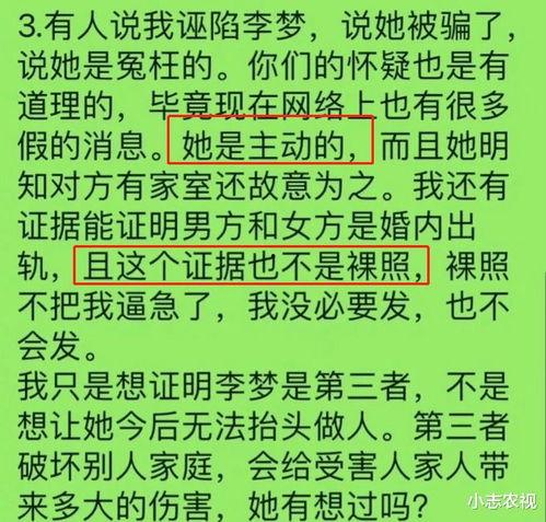 3. 网络暴力:李梦表示,自己在网络上也遭遇过严重的网络暴力,甚至有人对她进行人身攻击。这让李梦倍感痛苦,决定勇敢地站出来。